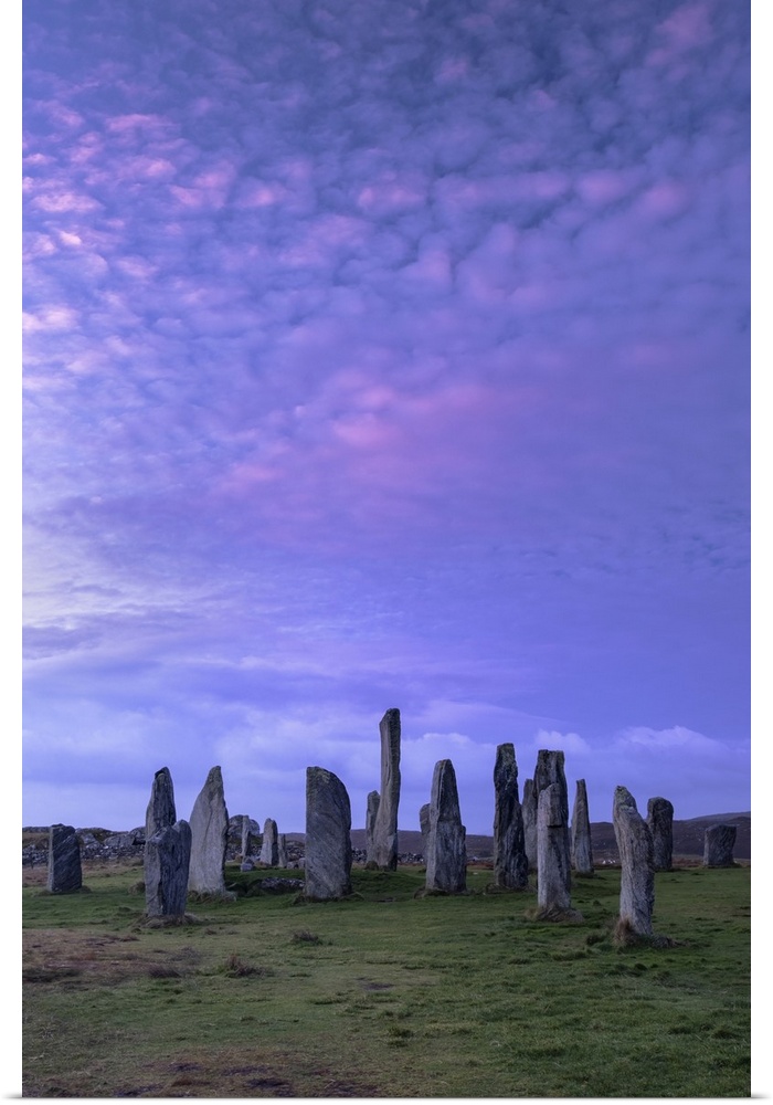 <p>The Callanish Standing Stones at sunrise, Callanish, Isle of Lewis, Outer Hebrides, Scotland, United Kingdom, Europe</p>