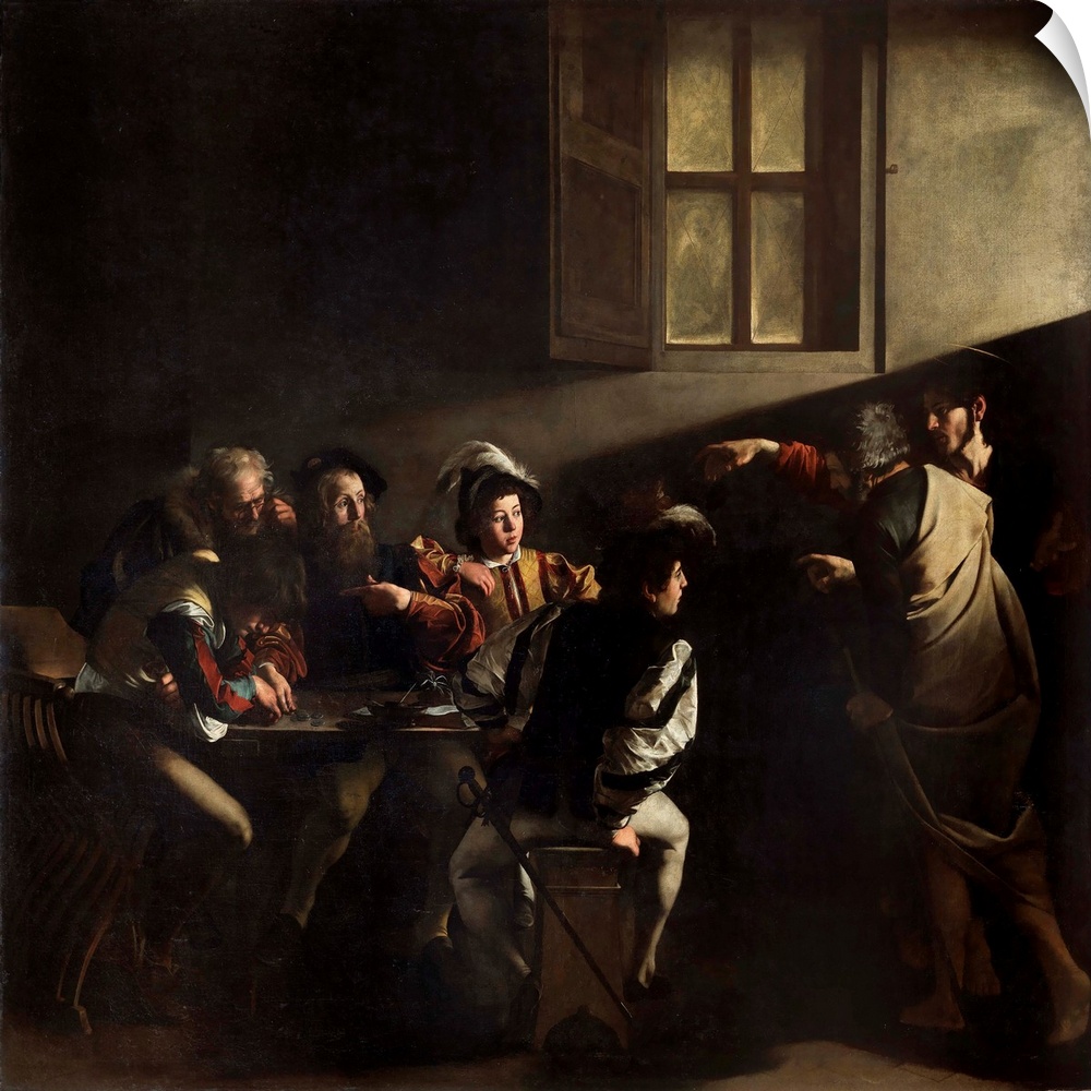 <p>The calling of St. Matthew - Painting by Michelangelo Merisi, called Caravaggio (1571-1610), oil on canvas, 1599-1600 (322x340 cm) - Chiesa di San Luigi dei Francesi, Roma (Italy)</p>