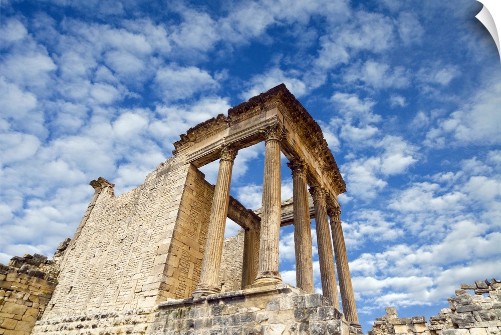 <p>The Capitol, Dougga Archaeological Site, UNESCO World Heritage Site, Tunisia, North Africa-</p>
