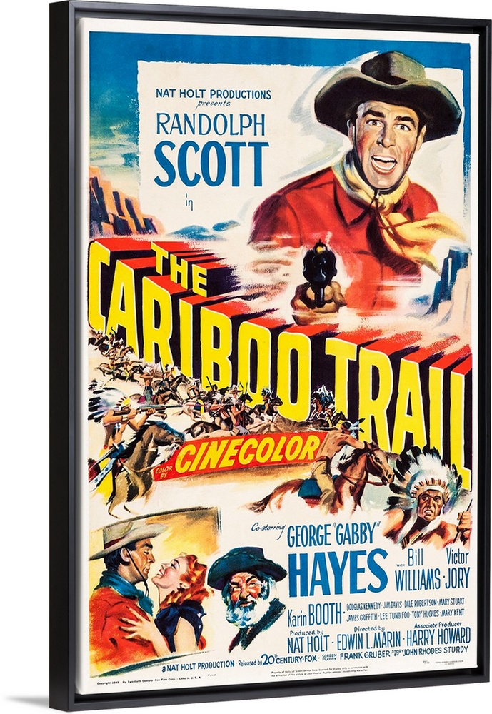 <p>The Cariboo Trail, US Poster Art, Top: Randolph Scott; Bottom From Left: Randolph Scott, Karin Booth, George 'Gabby' Hayes, 1950.</p>