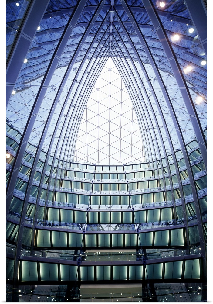 <p>A stunning view up the central glass atrium of The Point at Paddington Basin. The Point is a 13 level structure on a curved site at the north of the basin adjacent to Paddington Station, which has a direct link by way of a footbridge. The building offers a</p>