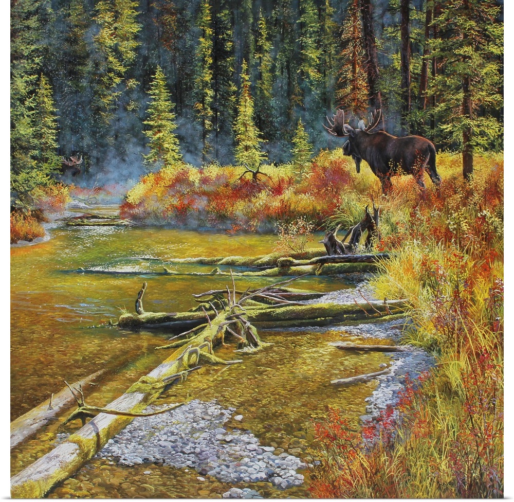 Art Contemporary Art Andrew Kiss Landscapes River, Creek and Stream Painting Wildlife Moose and Elk