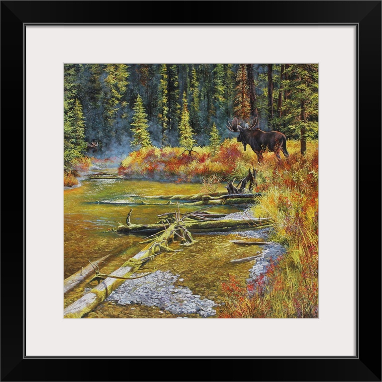 Art Contemporary Art Andrew Kiss Landscapes River, Creek and Stream Painting Wildlife Moose and Elk