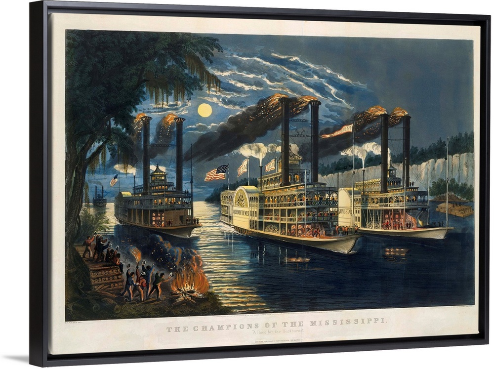 Art Classic Art Modern Art Rivers, Lakes and Oceans Currier and Ives Painting Transportation Boat Vintage Art