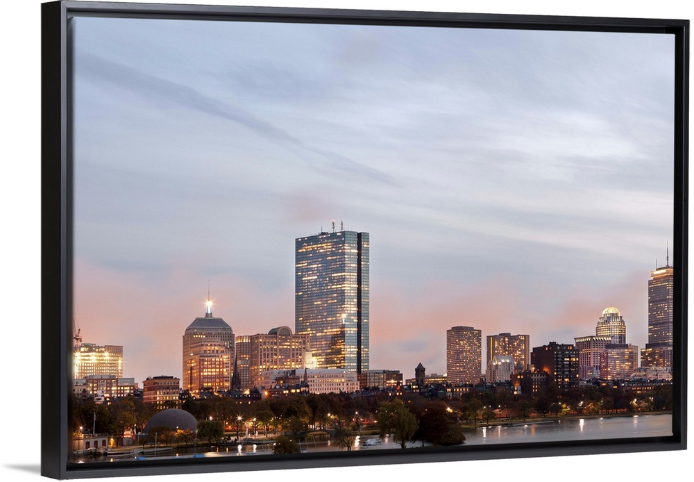 <p>The city of Boston from Charles River at dusk</p>
