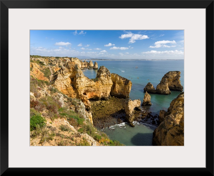 <p>The cliffs and sea stacks of Ponta da Piedade at the rocky coast of the Algarve in Portugal. Europe, Southern Europe, Portugal, March.</p>