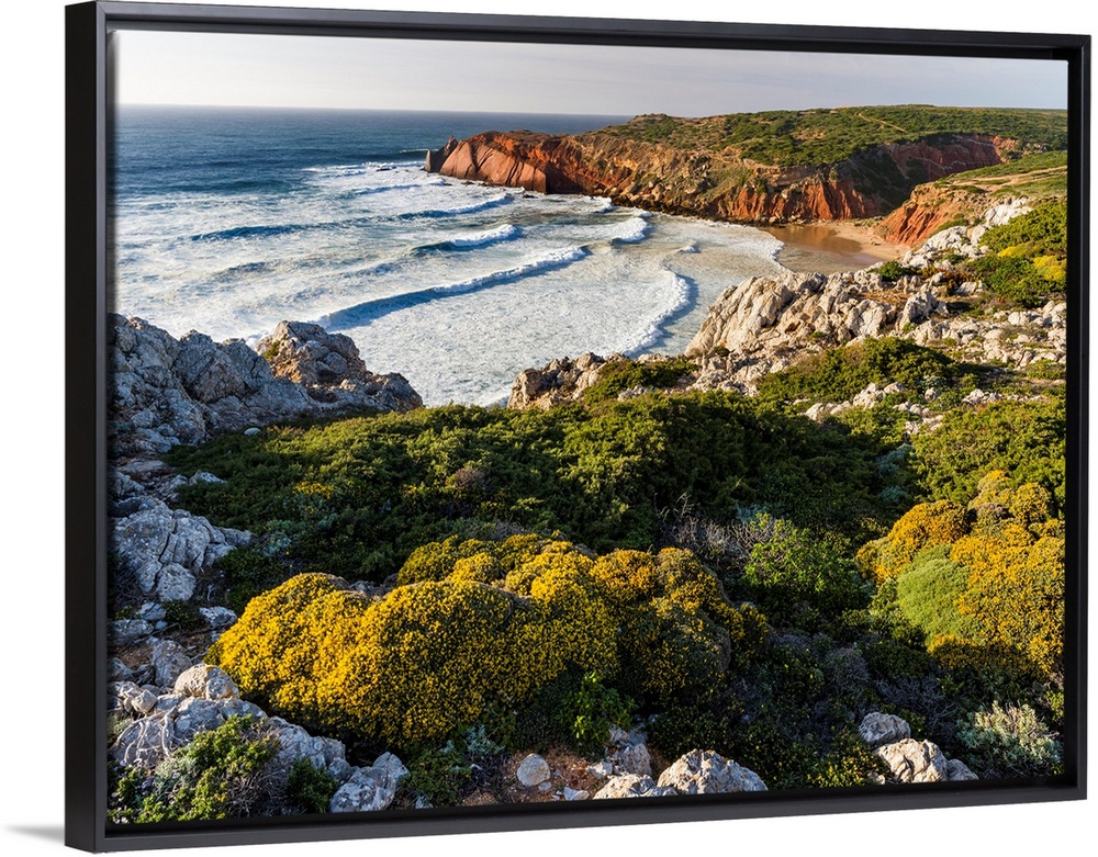 <p>Beach and cliffs at Praia do Telheiro at the Costa Vicentina. The coast of the Algarve during spring. Europe, Southern Europe, Portugal, March.</p>