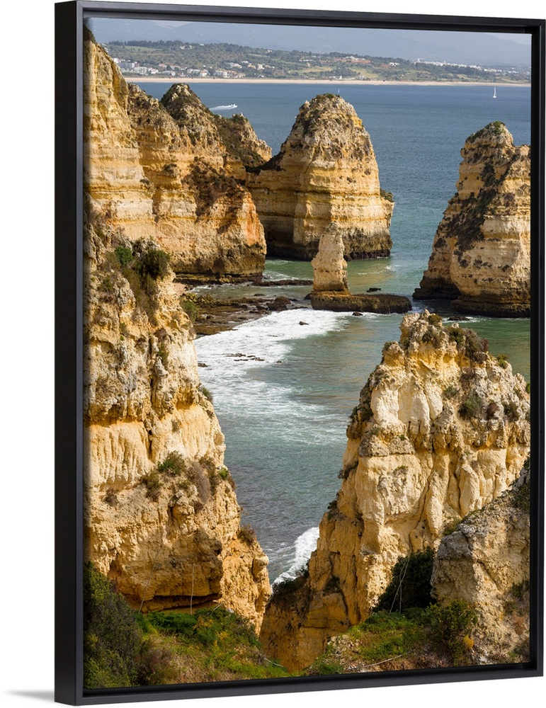 <p>The cliffs and sea stacks of Ponta da Piedade at the rocky coast of the Algarve in Portugal. Europe, Southern Europe, Portugal, March.</p>