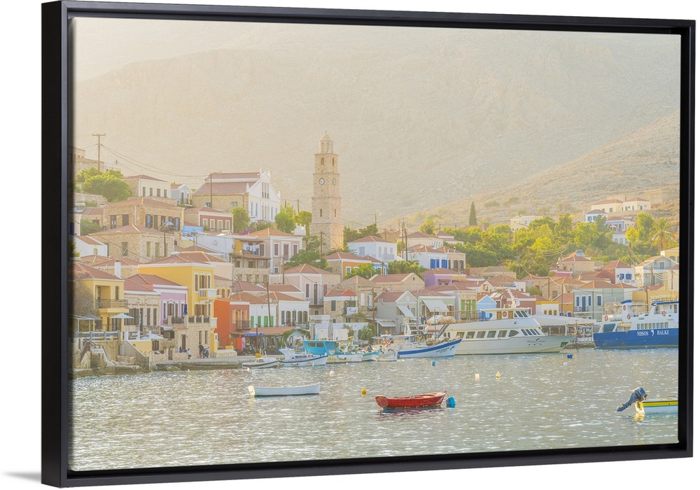 <p>The colourful harbour and Saint Nicholas church in the background, Halki, Chalki, Dodecanese Islands, Greece</p>