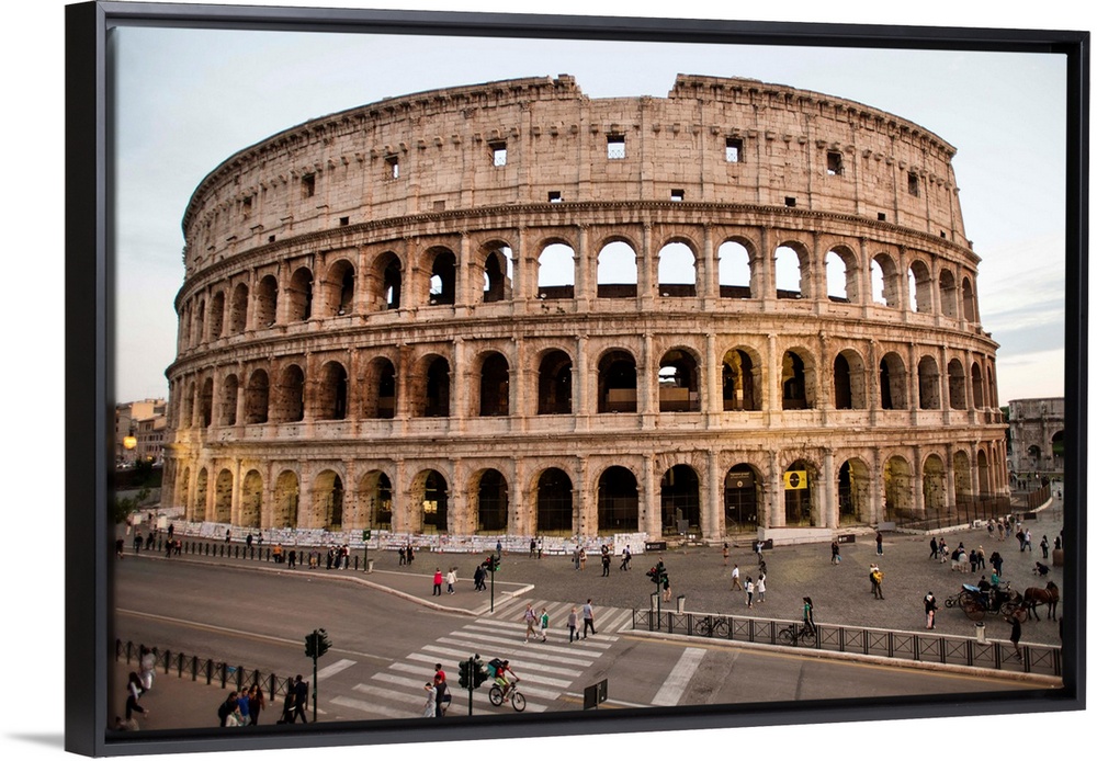 <p>Photograph of the Colosseum from across the street with tourists surrounding the grounds.</p>