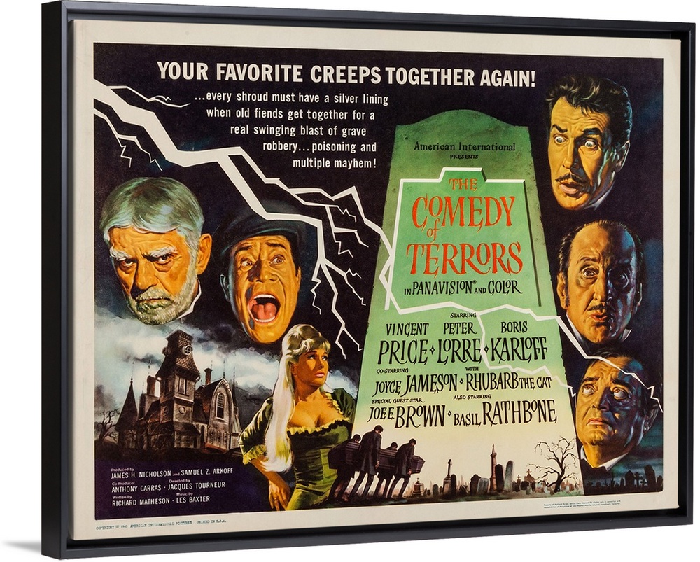 <p>The Comedy Of Terrors, US Poster Art, Clockwise From Left: Boris Karloff, Joe E. Brown, Joyce Jameson, Vincent Price, Basil Rathbone, Peter Lorre, 1963.</p>