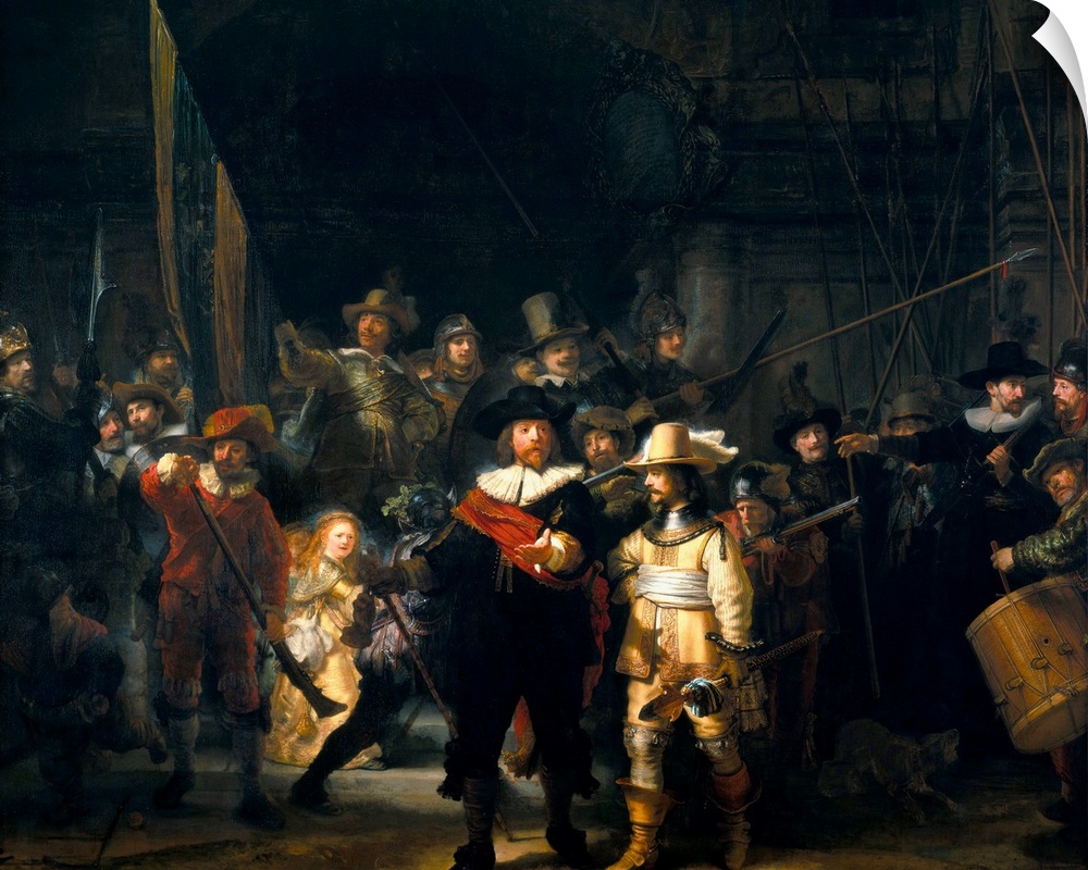 <p>The Company of Frans Banning Cocq and Willem van Ruytenburch, also known as The Night Watch or Nightwatch. 1642. Rijksmuseum, Amsterdam, The Netherlands.</p>