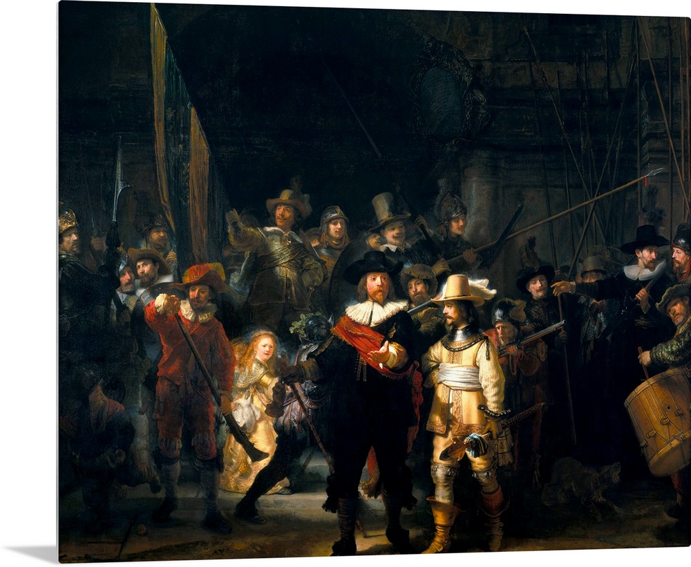 <p>The Company of Frans Banning Cocq and Willem van Ruytenburch, also known as The Night Watch or Nightwatch. 1642. Rijksmuseum, Amsterdam, The Netherlands.</p>