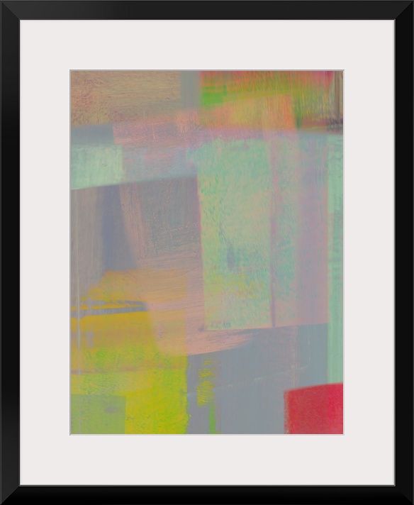 <p>A contemporary abstract expressionist collage in soft greens, teal, golds with a splash of red.</p>