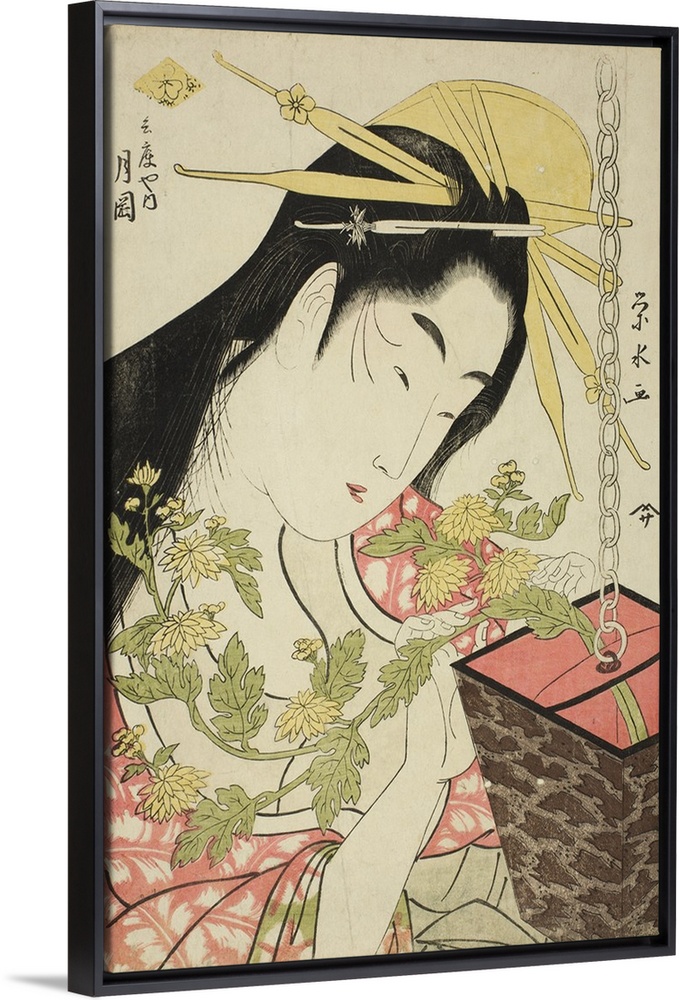 <p>The Courtesan Tsukioka of the Hyogoya, c.1797, colour woodblock print; oban.</p>