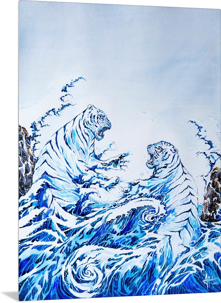 Marc Allante Art Blue Wall Art Contemporary Art Wildlife Painting Watercolor Wave Wildlife Tiger