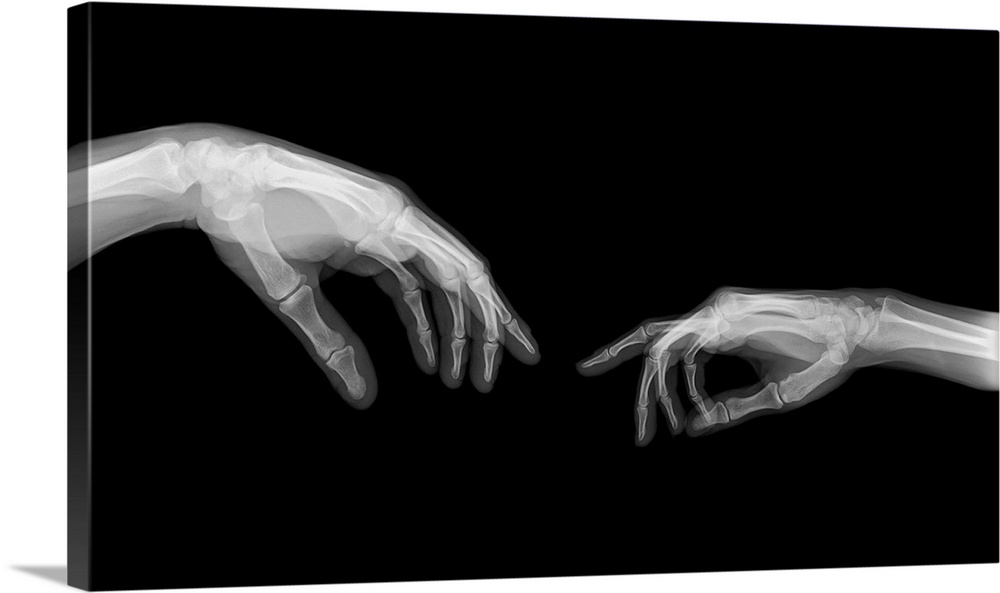 <p>The Creation of Adam (Michelangelo) two hands under x-ray</p>