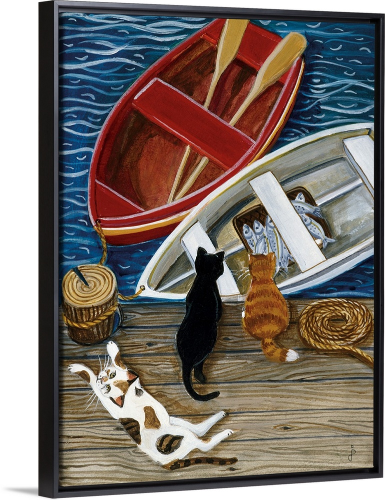 Art Contemporary Art Painting Transportation Boat Rowboat Wildlife Cat