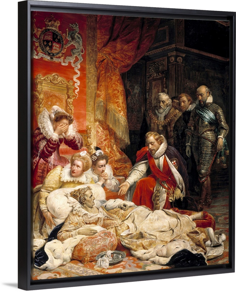 <p>The death of Elizabeth I, Queen of England, in 1603. Queen Elizabeth died of depression and disease on 24 March 1603 surrounded by his courtiers. Painting by Paul Delaroche (1797-1856), 1828. 4,22 x 3,43 m. Louvre Museum, Paris</p>