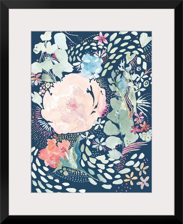 <p>Handpainted watercolor Floral Design with whimsical brush detailing</p>