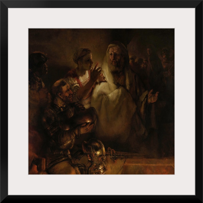 <p>The Denial of St. Peter, by Rembrandt van Rijn, 1660, Dutch painting, oil on canvas. Countering the accusation of the maid of Caiaphas, Peter denies he is a disciple of Jesus, who has been arrested and (at right) looks back as he is taken away by soldiers.</p>
