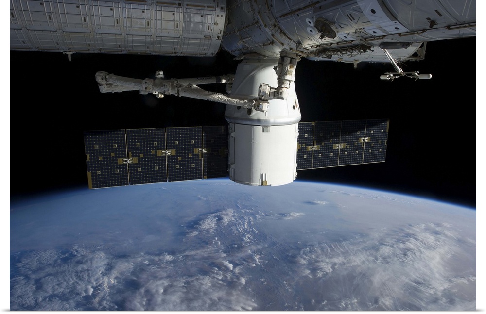 <p>March 3, 2013 - The docking of SpaceX Dragon to the International Space Station above a cloud covered Earth.</p>