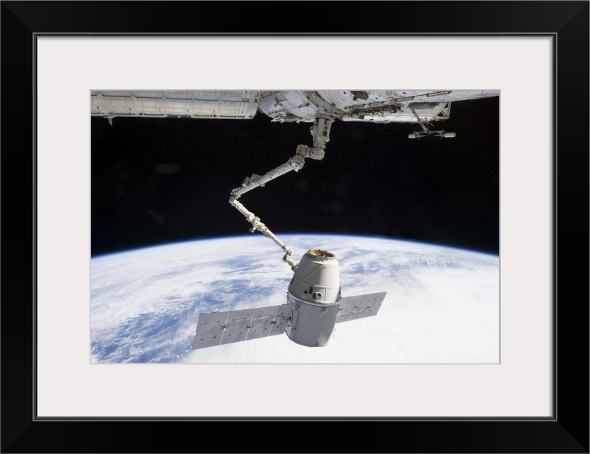 <p>March 3, 2013 - The docking of SpaceX Dragon to the International Space Station above a blue and white Earth.</p>