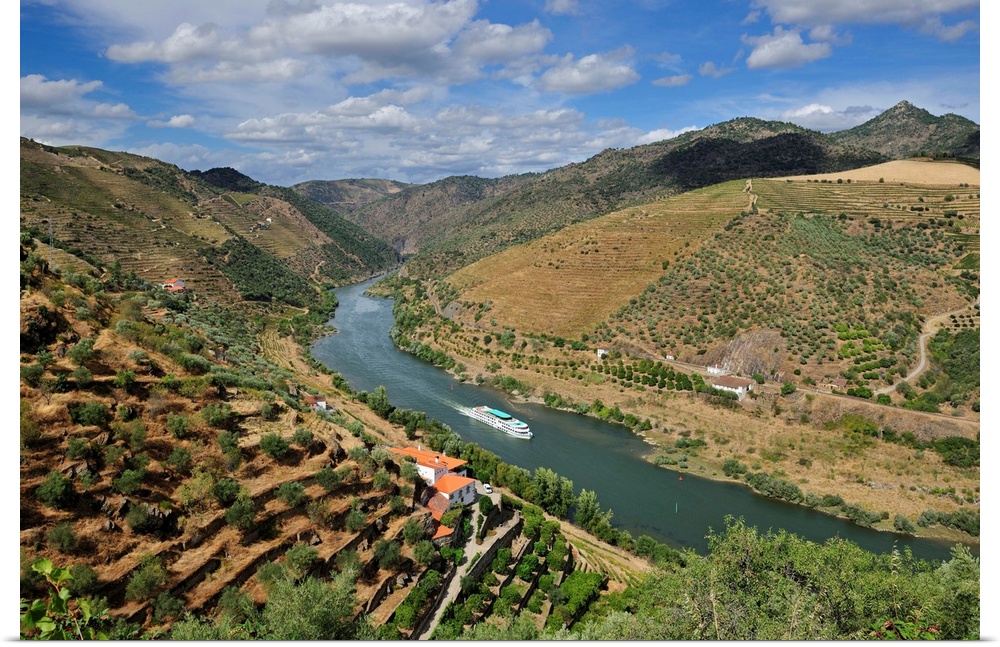 <p>The Douro river and a hotel-ship in the Valeira Dam. Sao Joao da Pesqueira, Portugal</p>