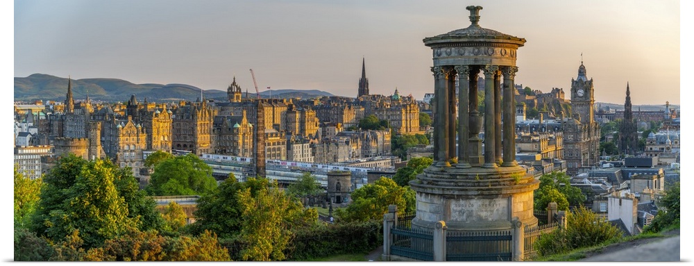 <p>The Dugald Stewart monument on Calton Hill, Edinburgh city skyline in the background, UNESCO World Heritage Site, Edinburgh, Lothian, Scotland, United Kingdom, Europe</p>