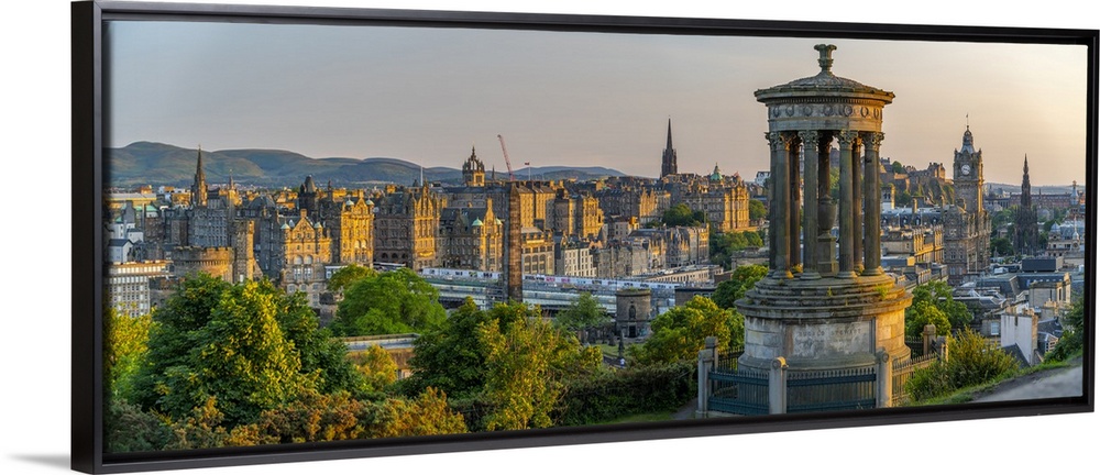 <p>The Dugald Stewart monument on Calton Hill, Edinburgh city skyline in the background, UNESCO World Heritage Site, Edinburgh, Lothian, Scotland, United Kingdom, Europe</p>