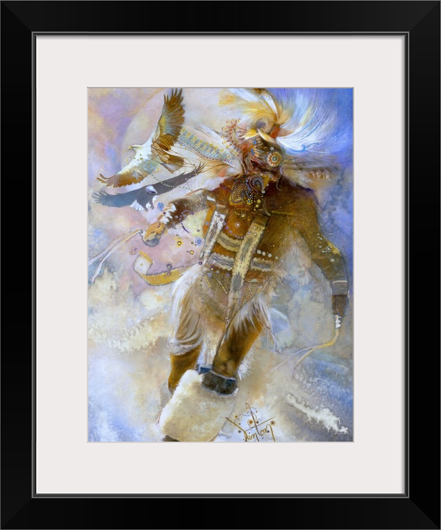 <p>A contemporary painting of a Native American tribesman performing ceremonial dance.</p>