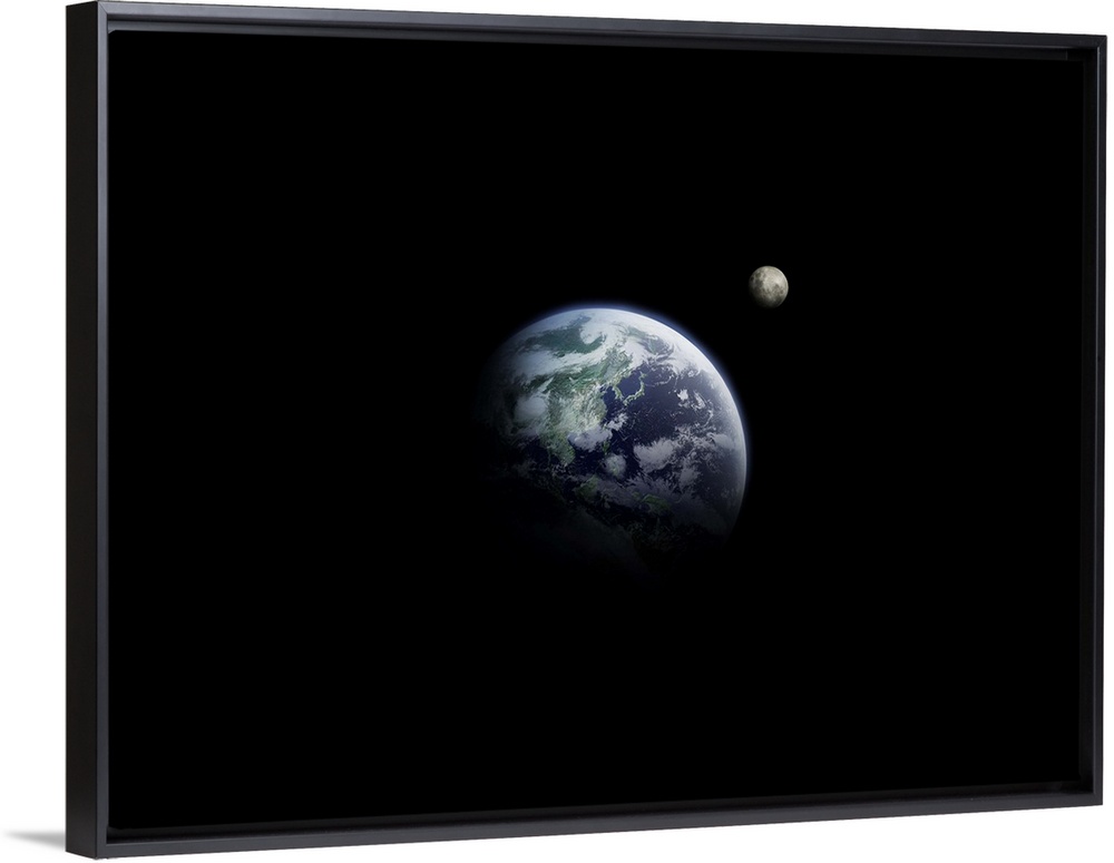 <p>The earth and the moon, computer graphic, black background, copy space</p>
