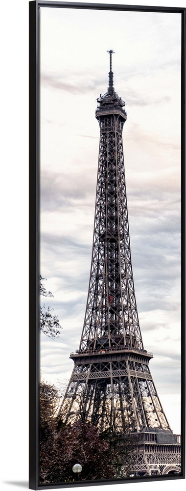<p>View of the famous Eiffel Tower monument in Paris, France, against an overcast sky.</p>