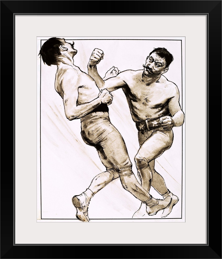 <p>The End of an Era: King of the Bare-Knuckle Boxers. John L. Sullivan, whose heavy punch floored every one of his challengers in seven fight-packed years. Original artwork for "Look and Learn," issue 620, 1 December 1973.</p>