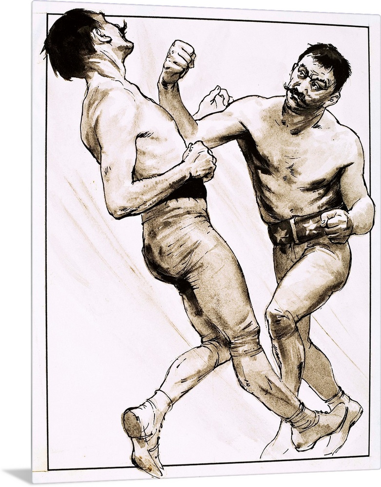 <p>The End of an Era: King of the Bare-Knuckle Boxers. John L. Sullivan, whose heavy punch floored every one of his challengers in seven fight-packed years. Original artwork for "Look and Learn," issue 620, 1 December 1973.</p>