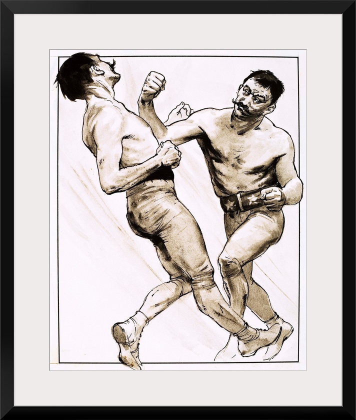 <p>The End of an Era: King of the Bare-Knuckle Boxers. John L. Sullivan, whose heavy punch floored every one of his challengers in seven fight-packed years. Original artwork for "Look and Learn," issue 620, 1 December 1973.</p>