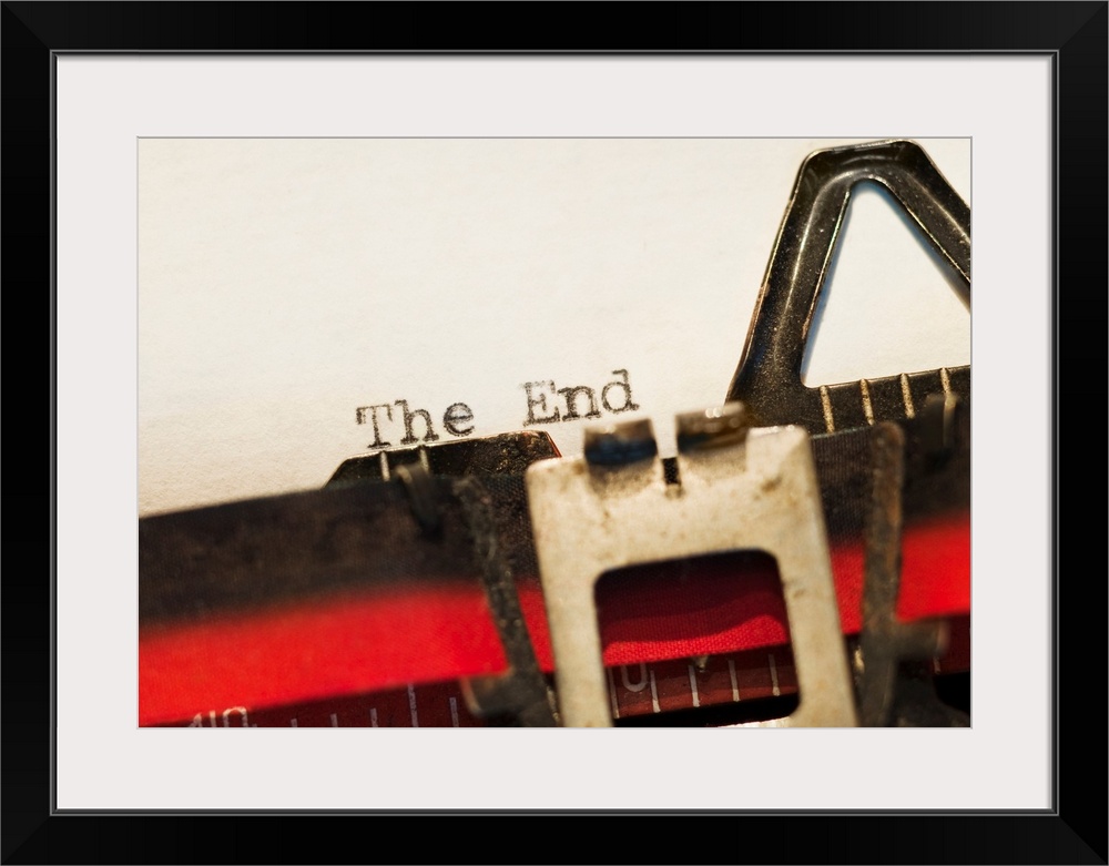<p>This picture was taken closely zoomed in on a typewriter that had just written "The End" onto a blank piece of paper.</p>