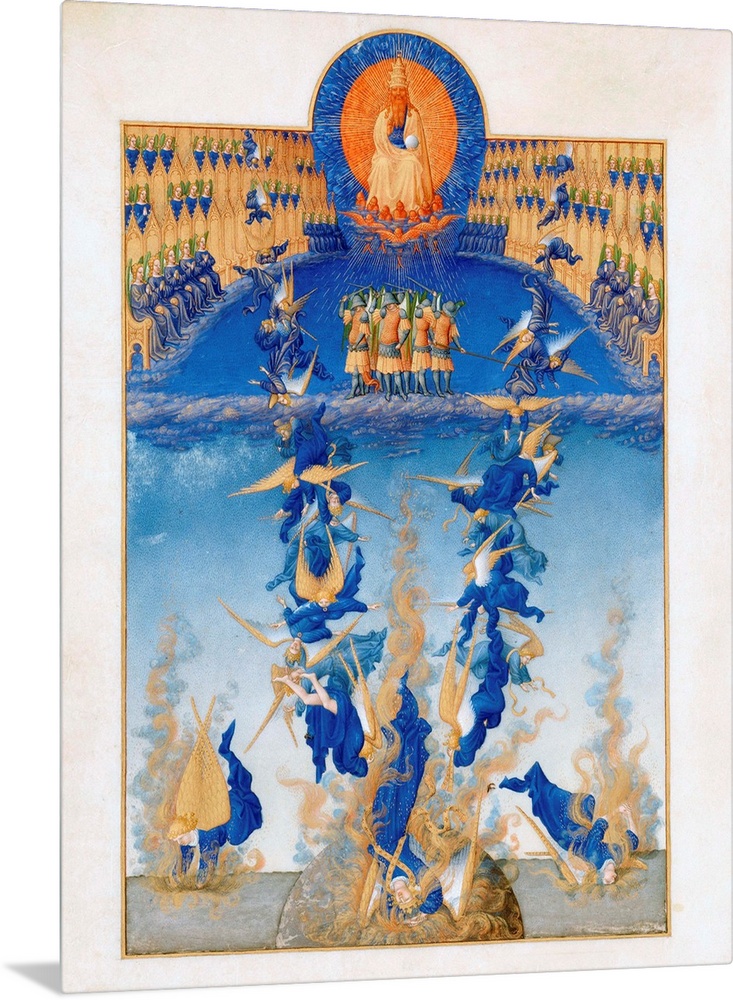 <p>Limbourg Brothers, The Fall of the Rebel Angels, folio 64v from the Tres Riches Heures du duc de Berry, 1411-16, tempera on vellum, 29 x 21 cm (11.4 x 8.3 in), Musee Conde, Chantilly, France.</p>