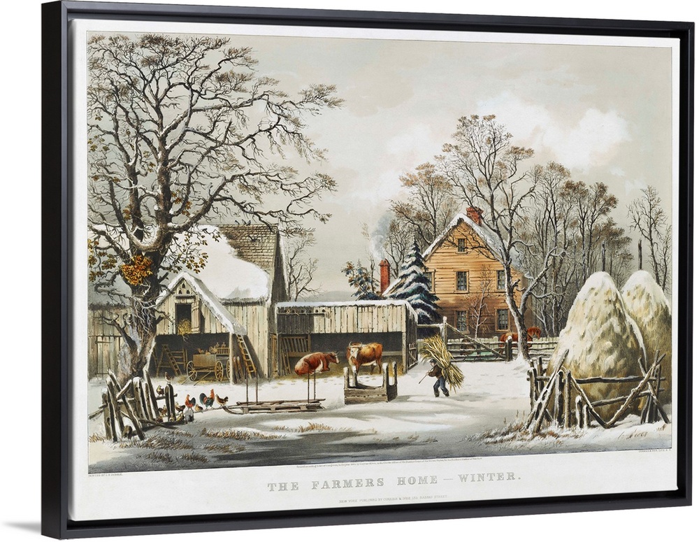 <p>The Farmer's Home - Winter, 1863 (originally hand-coloured lithograph) by Currier, N. (1813-88) and Ives, J.M. (1824-95)</p>