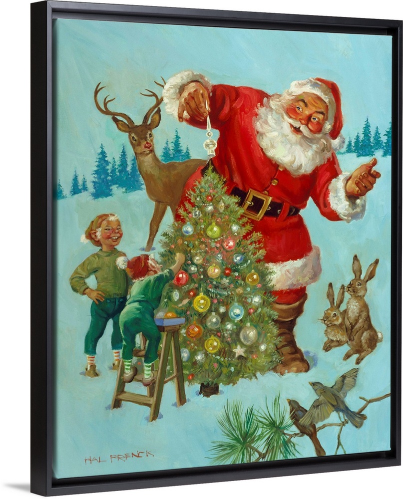 Art Decorative Art Hal Frenck Holidays Christmas Santa Claus Painting