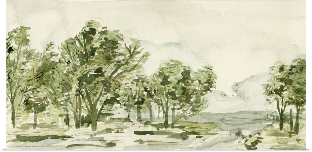 Art Traditional Living Room Art Decorative Art Green Wall Art Landscapes Trees Forest Painting Melissa Wang Watercolor