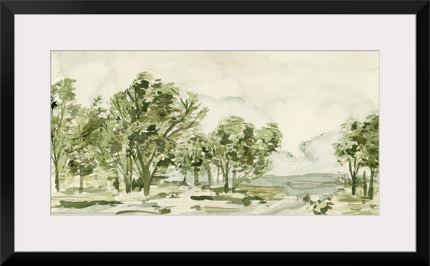 Art Traditional Living Room Art Decorative Art Green Wall Art Landscapes Trees Forest Painting Melissa Wang Watercolor