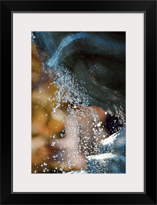 <p>Closeup of the edge of a fountain with water splashing over the edges.</p>