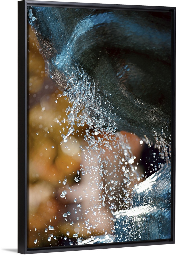 <p>Closeup of the edge of a fountain with water splashing over the edges.</p>