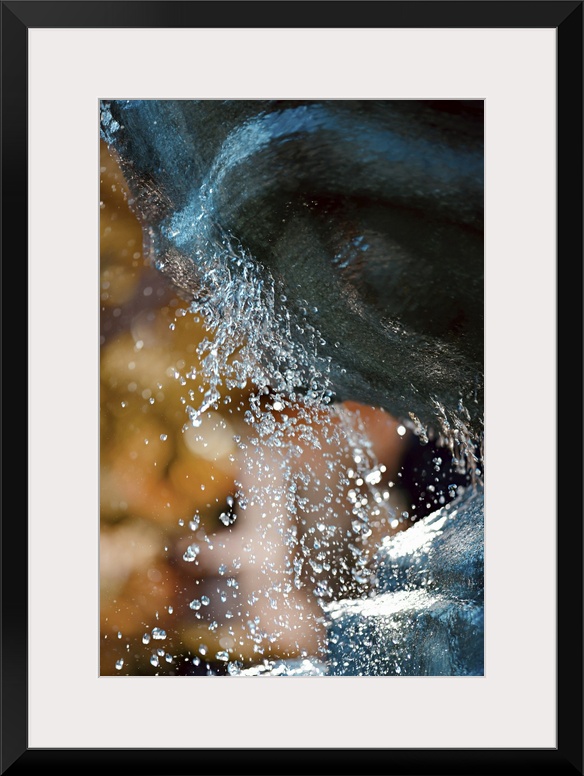 <p>Closeup of the edge of a fountain with water splashing over the edges.</p>