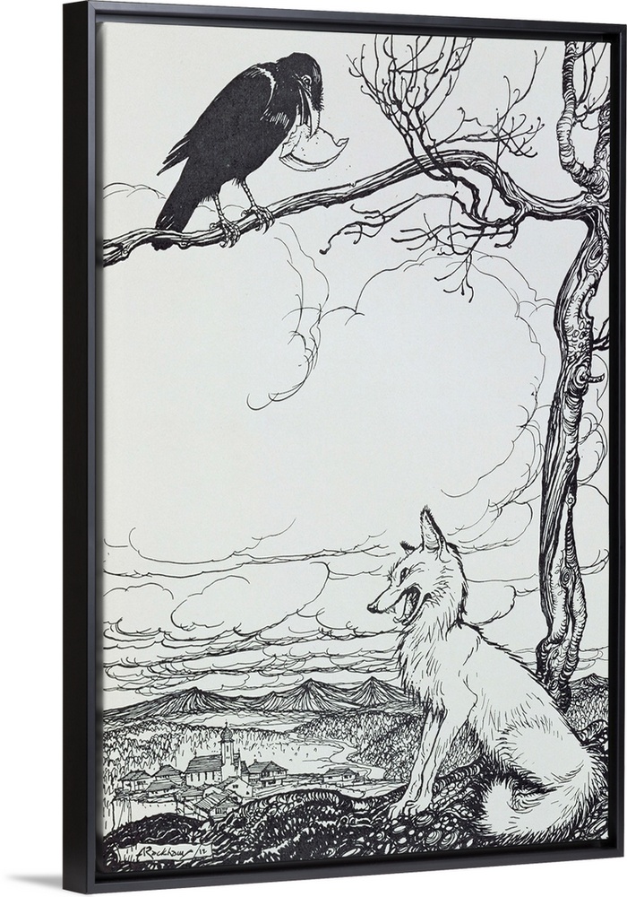 <p>VCH175706 The Fox and the Crow, illustration from 'Aesop's Fables', published by Heinemann, 1912 (engraving) by Rackham, Arthur (1867-1939)</p>