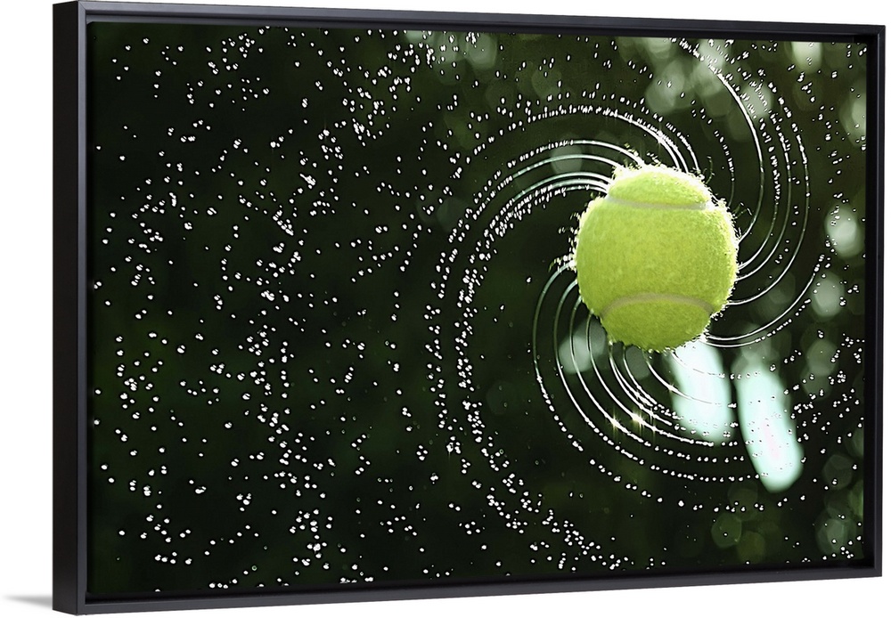 <p>Tennis ball soaked in water thrown with a top spin.</p>