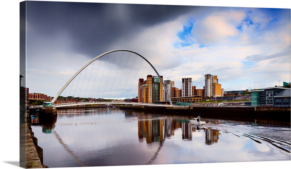 <p>The gateshead millennium bridge, a pedestrian tilt bridge spanning the river Tyne between gateshead's quays arts quarter with the Baltic center for contemporary arts on the south bank, and the quayside of Newcastle upon Tyne on the north bank, Tyne and wear, Tyneside, England.</p>