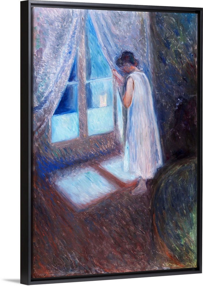 <p>Edvard Munch's life and art particularly his iconic work, The Scream (1893; National Museum, Oslo), have come to epitomize modern notions of anxiety. Yet the same year he painted his radical image, Munch was experimenting with other styles and themes. Frequent visits to Paris and Berlin between 1889 and 1893 brought the Norwegian artist into direct contact with the Impressionists and Symbolists. These travels encouraged him to adopt their bold brushwork, daring compositions, and imagery. But he nonetheless continued to incorporate the Romantic subjects of the northern European artists long familiar to him, such as a lone figure at an open window. This combination is powerfully manifested in, The Girl by the Window, made soon after his return home to Norway. In the dead of night, a young girl in her nightgown stands in a darkened room gazing out at the city. The steep angle of the floor and the deep shadows that obliterate everything in the room, save a suggestion of a piece of furniture at the lower right, create an unsettling and enigmatic scene. Loosely applied, somber brown tones mingle with violets and blues, evoking a feeling of melancholy and anticipation. The window functions as a symbolic barrier, separating the interior from the outside world. The sense of mystery is deepened and complicated by the fact that we cannot see the expression on the girl's face, nor do we know what she covertly observes. She in turn appears unaware that, as she gazes from behind the curtain at something unknown outside, the artist and implied viewer are watching her.</p>