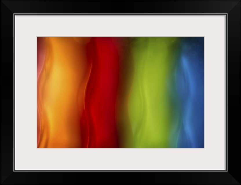<p>Abstract photograph in orange, red, green, and blue vertical layers.</p>